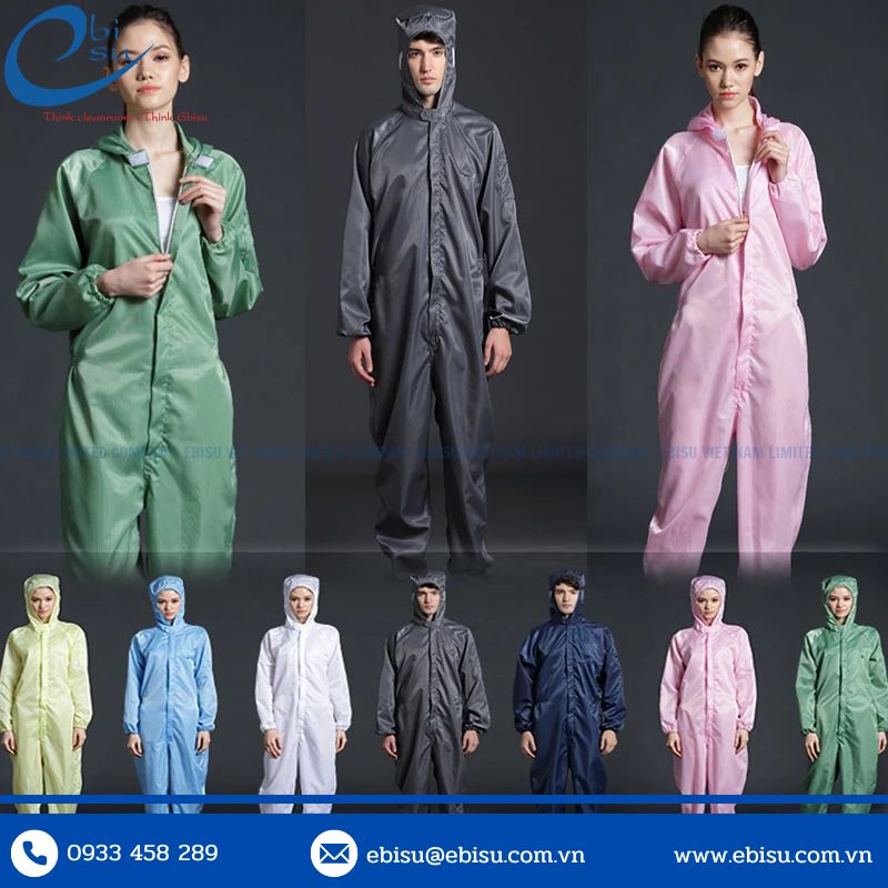 • Quần áo phòng sạch chống tĩnh điện: Áo liền quần, áo rời quần, áo blouse, áo choàng dài, áo khoác ESD.