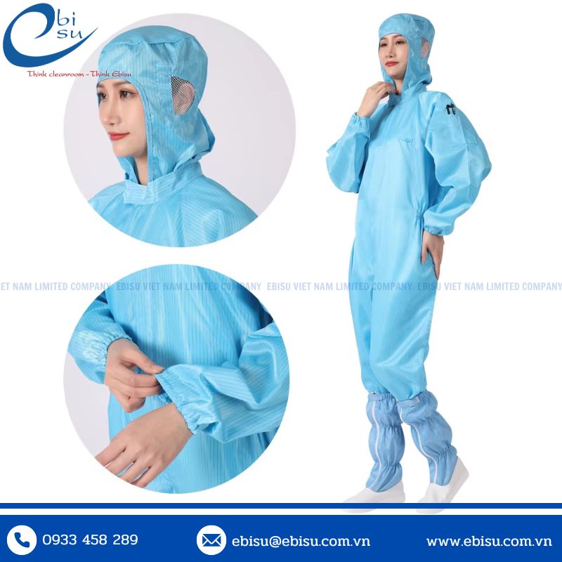 • Khả năng lọc bụi và chống vi khuẩn: quần áo được may kín cổ tay, cổ chân, cổ áo và có thể kết hợp với khẩu trang, mũ trùm hoặc giày phòng sạch để đạt hiệu quả tối ưu.
