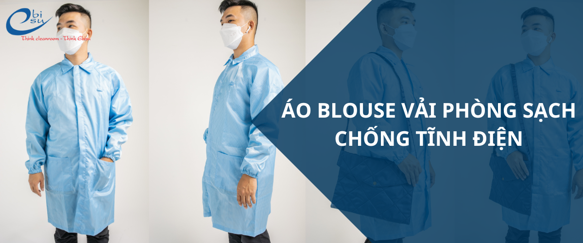 Áo blouse phòng sạch là mẫu áo khoác dài, thường có cổ đứng hoặc cổ bẻ, tay dài, được làm từ vải polyester pha sợi carbon nhằm hạn chế phát sinh bụi, chống tĩnh điện, đồng thời tránh lây nhiễm chéo giữa các vùng làm việc. Áo thường có nút hoặc khóa kéo phía trước, dễ mặc và thích hợp dùng trong nhà máy, phòng thí nghiệm, bệnh viện kỹ thuật cao.
