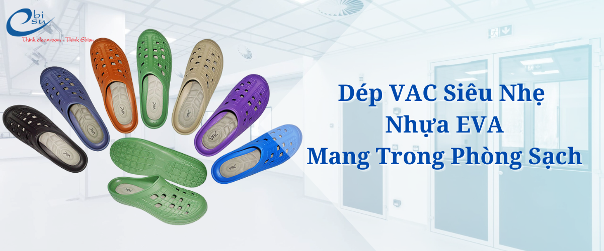 Dép VAC EVA có đặc điểm chống trơn trượt, không để lại bụi, không gây tiếng ồn, đồng thời giúp giảm mỏi chân khi phải đứng hoặc đi lại nhiều giờ liền. Sản phẩm này đang được ứng dụng rộng rãi trong các khu công nghiệp hiện đại tại Việt Nam.
