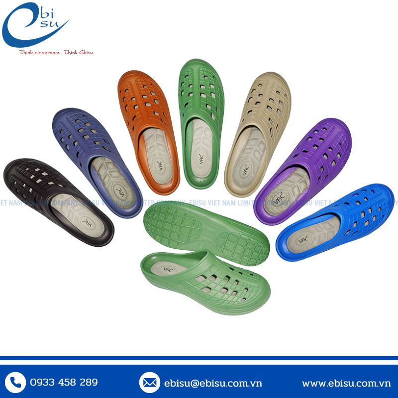 Đây là loại dép chuyên dụng được thiết kế riêng cho các môi trường làm việc khắt khe như phòng sạch, nhà máy điện tử, dược phẩm, thực phẩm,…. Sản phẩm được làm từ nhựa EVA (Ethylene Vinyl Acetate) – loại vật liệu siêu nhẹ, đàn hồi tốt, không thấm nước và dễ vệ sinh.