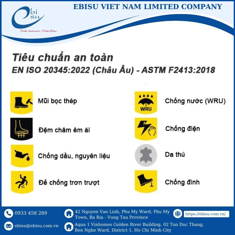 - Tiêu chuẩn: ASTM F2413, EN ISO 20345:2011