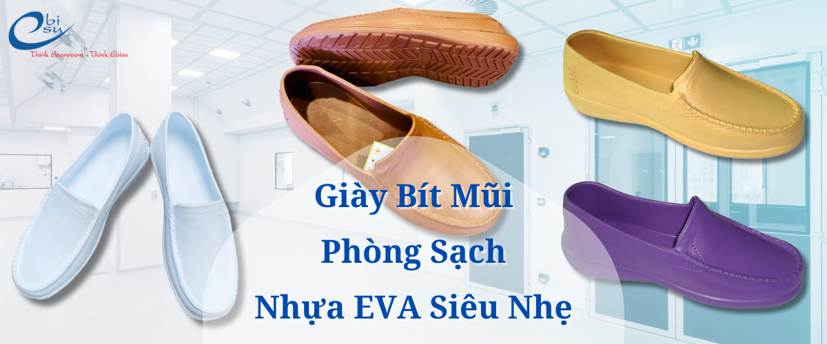 Là dòng giày chuyên dụng cho môi trường phòng sạch hoặc bán sạch, giày bít mũi EVA được làm từ chất liệu nhựa EVA nguyên sinh, có trọng lượng siêu nhẹ, không thấm nước và dễ dàng vệ sinh. Thiết kế bít mũi kín phần ngón chân, giúp tránh bụi, mảnh vụn, hóa chất bắn dính hoặc các nguy cơ từ môi trường.