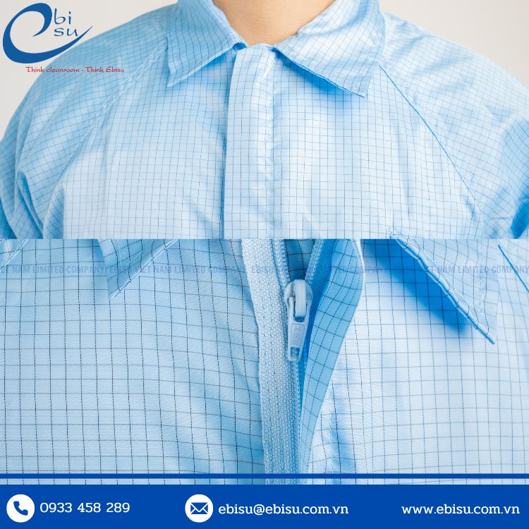 Việc đặt may áo blouse vải phòng sạch theo yêu cầu sẽ đảm bảo tính vừa vặn, thuận tiện trong thao tác và quan trọng hơn là đảm bảo tiêu chuẩn sạch trong từng chi tiết. Đặc biệt, với những ngành công nghiệp đòi hỏi kiểm soát tĩnh điện nghiêm ngặt như vi mạch, linh kiện điện tử, việc sử dụng loại vải ESD (Electrostatic Discharge) có dệt sợi carbon chống tĩnh điện là cực kỳ cần thiết.