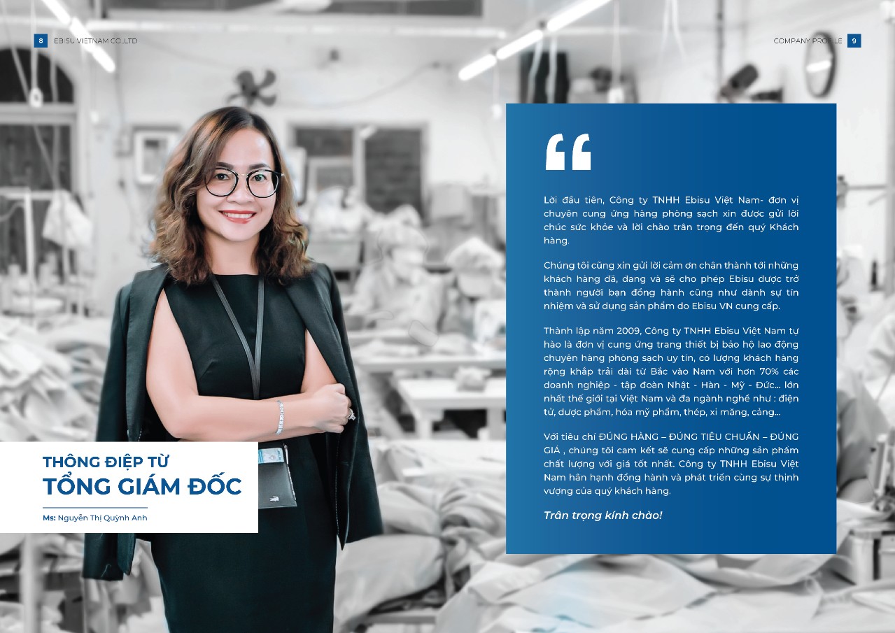 Công Ty TNHH Ebisu Việt Nam là một trong những đơn vị tiên phong trong lĩnh vực may đo quần áo phòng sạch và đồng phục chuyên dụng cho doanh nghiệp. Với hệ thống xưởng may quy mô, đội ngũ kỹ thuật viên lành nghề và quy trình kiểm định nghiêm ngặt, Ebisu cam kết mang đến sản phẩm chất lượng cao và dịch vụ tận tâm cho khách hàng trên toàn quốc.