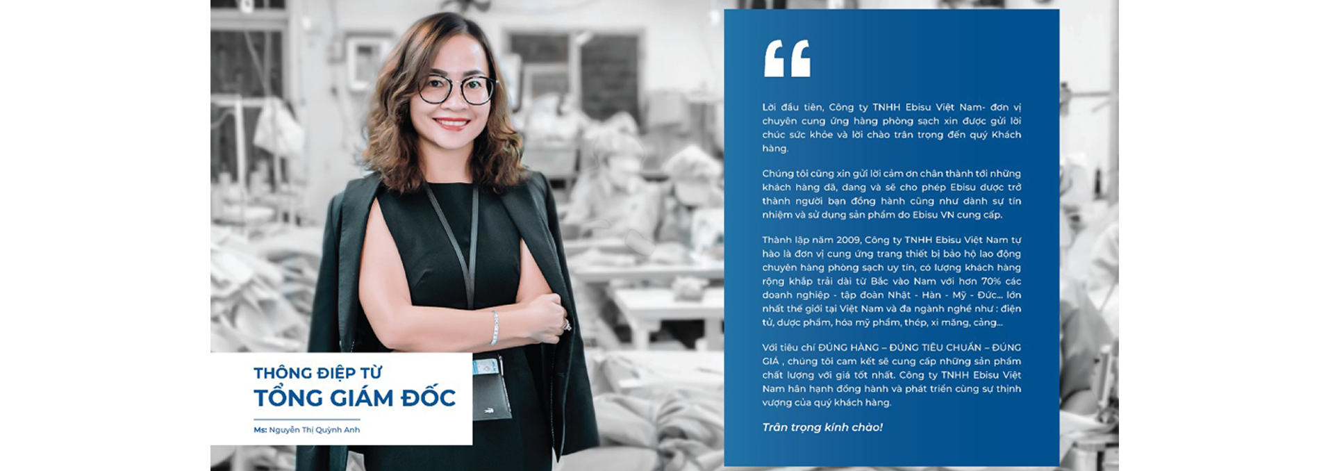 Công ty TNHH Ebisu Việt Nam là đơn vị chuyên sản xuất, cung cấp và gia công đồng phục bảo hộ – quần áo phòng sạch – thiết bị bảo hộ lao động phục vụ đa ngành nghề như: điện tử, công nghiệp nặng, chế biến thực phẩm, y tế, cơ khí, kho vận, logistic, phòng sạch…
