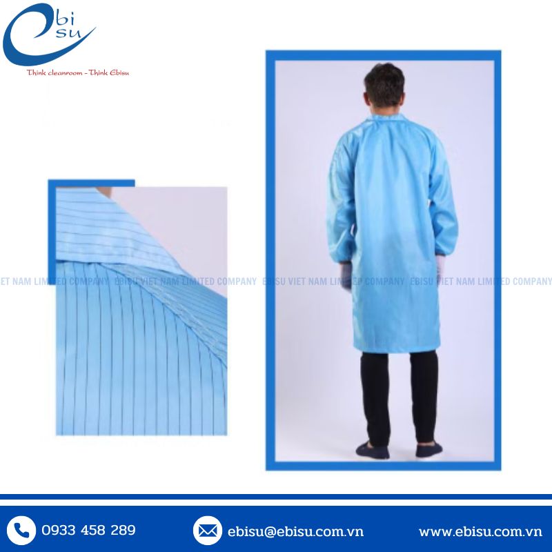 Dưới đây là các thông số cơ bản của dòng sản phẩm áo khoác blouse phòng sạch chống tĩnh điện do Ebisu gia công: