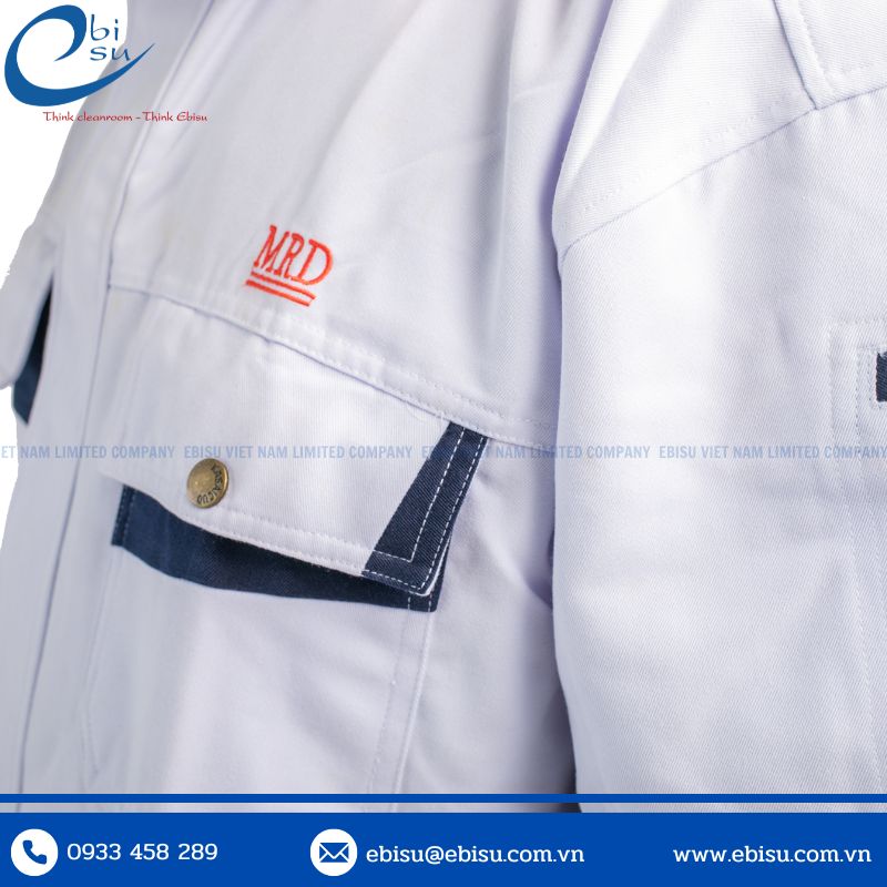 - Chất liệu cao cấp: Sử dụng vải kaki kết hợp với sợi carbon, đảm bảo khả năng chống tĩnh điện trong khoảng 10^6 – 10^9 Ω.