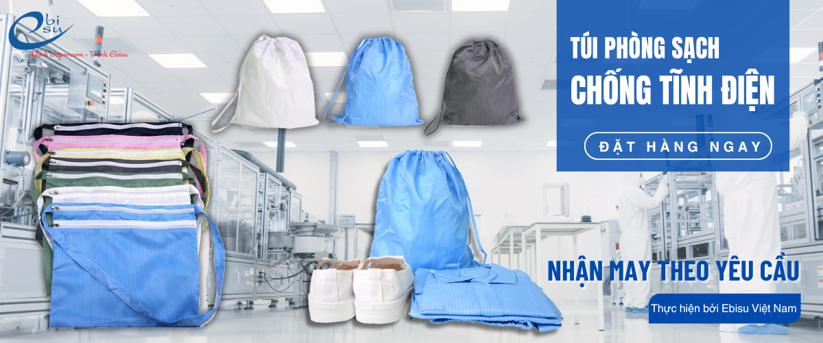 Công ty TNHH Ebisu Việt Nam tự hào là một trong những đơn vị tiên phong chuyên cung cấp trang thiết bị bảo hộ lao động, sản phẩm phòng sạch và gia công các mặt hàng vải chống tĩnh điện theo yêu cầu – trong đó có dịch vụ may túi dây rút vải chống tĩnh điện chất lượng cao. Với kinh nghiệm hơn 10 năm trong lĩnh vực cung ứng giải pháp ESD và Cleanroom, chúng tôi cam kết đem đến cho khách hàng sản phẩm đạt chuẩn, bền đẹp và phù hợp với từng mô hình sản xuất đặc thù.