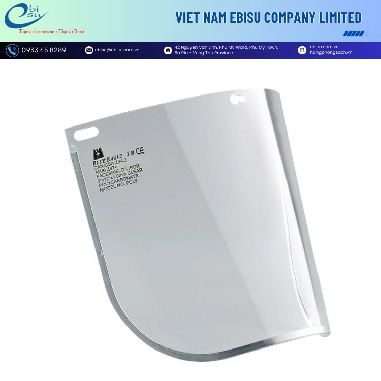 Tấm Kính Che Mặt Blue Eagle FC28 là thiết bị bảo hộ lao động, được thiết kế với kiểu dáng lưỡi trai, viền được bọc nhôm có tác dụng bẻ cong kính che ôm sát khuôn mặt theo điều chỉnh của người sử dụng.